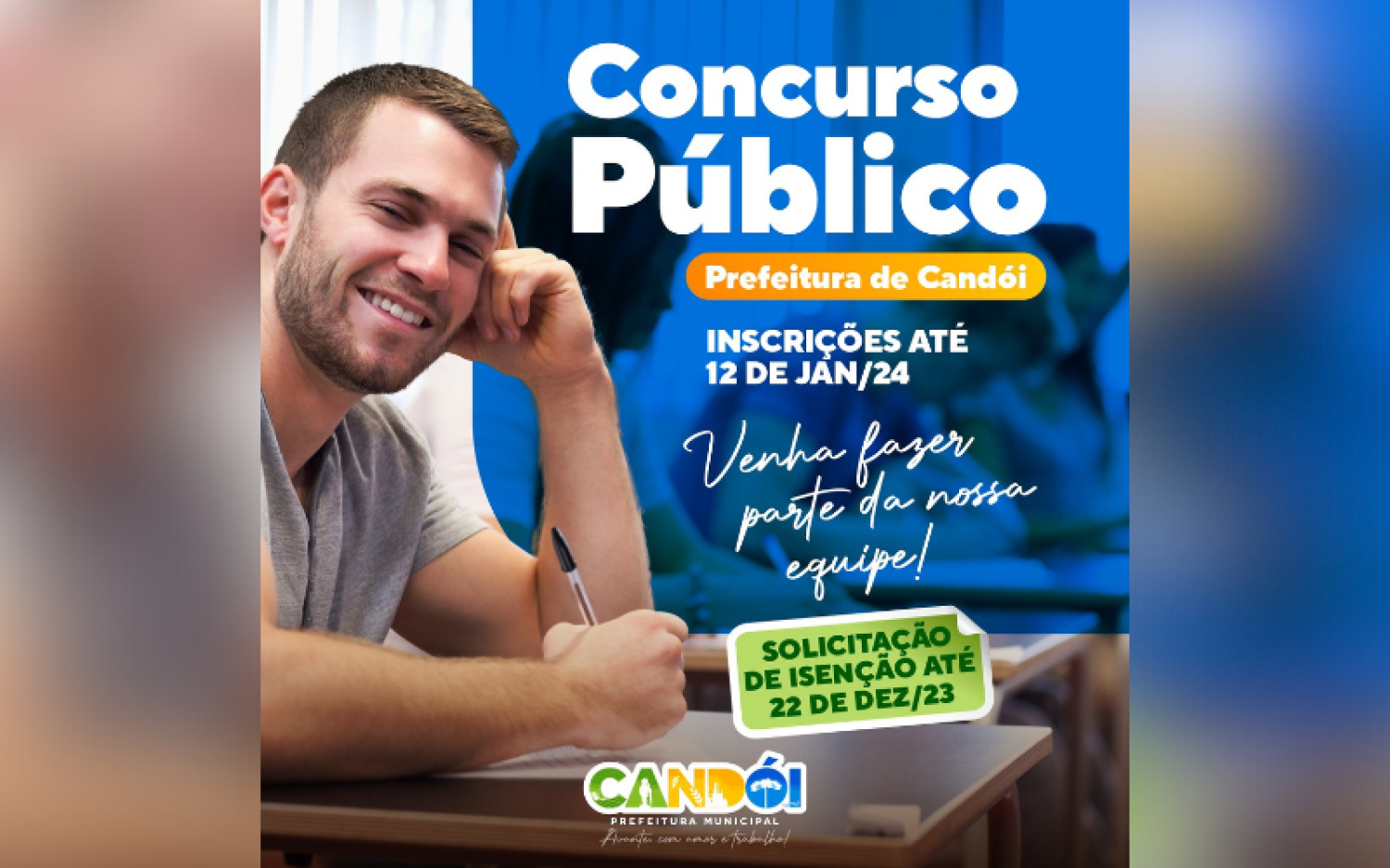 Os interessados devem ficar atentos às atualizações sobre o concurso público de Candói no site do Ippec (www.ippec.org.br), da Prefeitura de Candói (www.candoi.pr.gov.br) e no Diário Oficial do Município. As provas escritas estão previstas para serem aplicadas no dia 25 de fevereiro de 2024.