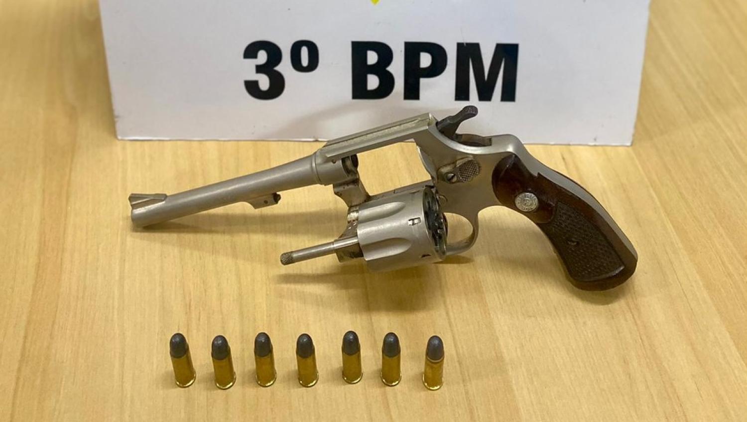 No carro dele, os militares do TMA resgataram um revólver calibre 32, municiado com 7 munições intactas. A arma é registrada, porém foi constatado que a documentação estava em venda.