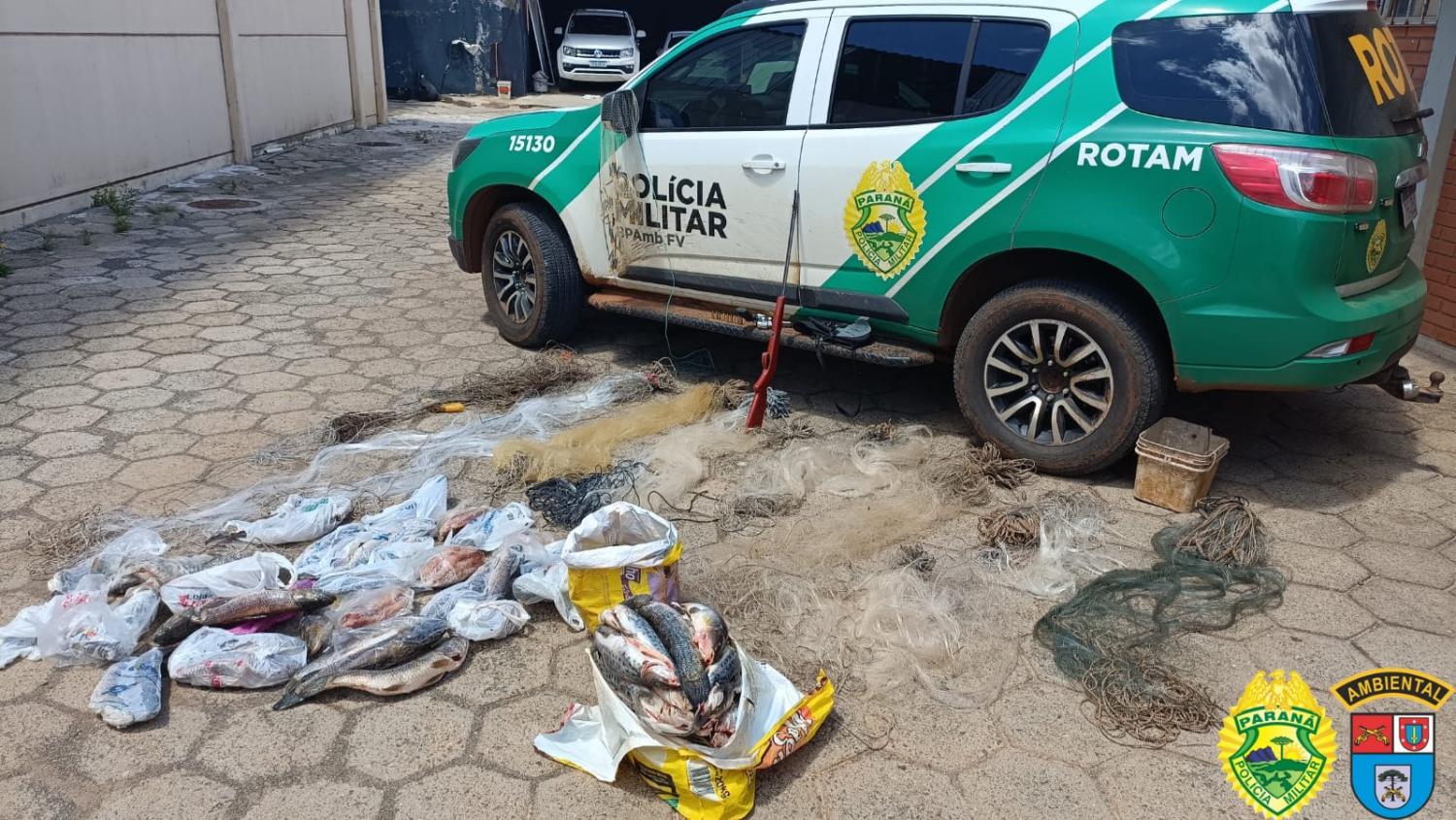 Ao averiguar denúncia na comunidade de Porto Fanor, em Foz do Jordão, nesta quinta-feira (25), policiais ambientais realizaram a prisão de três pescadores por crimes de pesca predatória e posse irregular de armas de fogo.