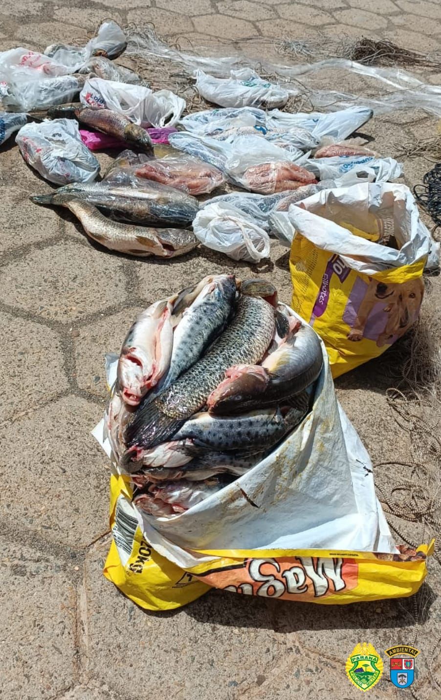 Os três, de 65, 73 e 75 anos respectivamente, foram flagrados pescando no reservatório da Hidrelétrica Salto Santiago. Com eles, a polícia apreendeu 380 metros de espinhel, 350 metros de redes e 66 Kg de peixes nativos (Traíras, bagres e cascudos), além de um revólver calibre 38, nove munições e uma espingarda artesanal “Taquari”.