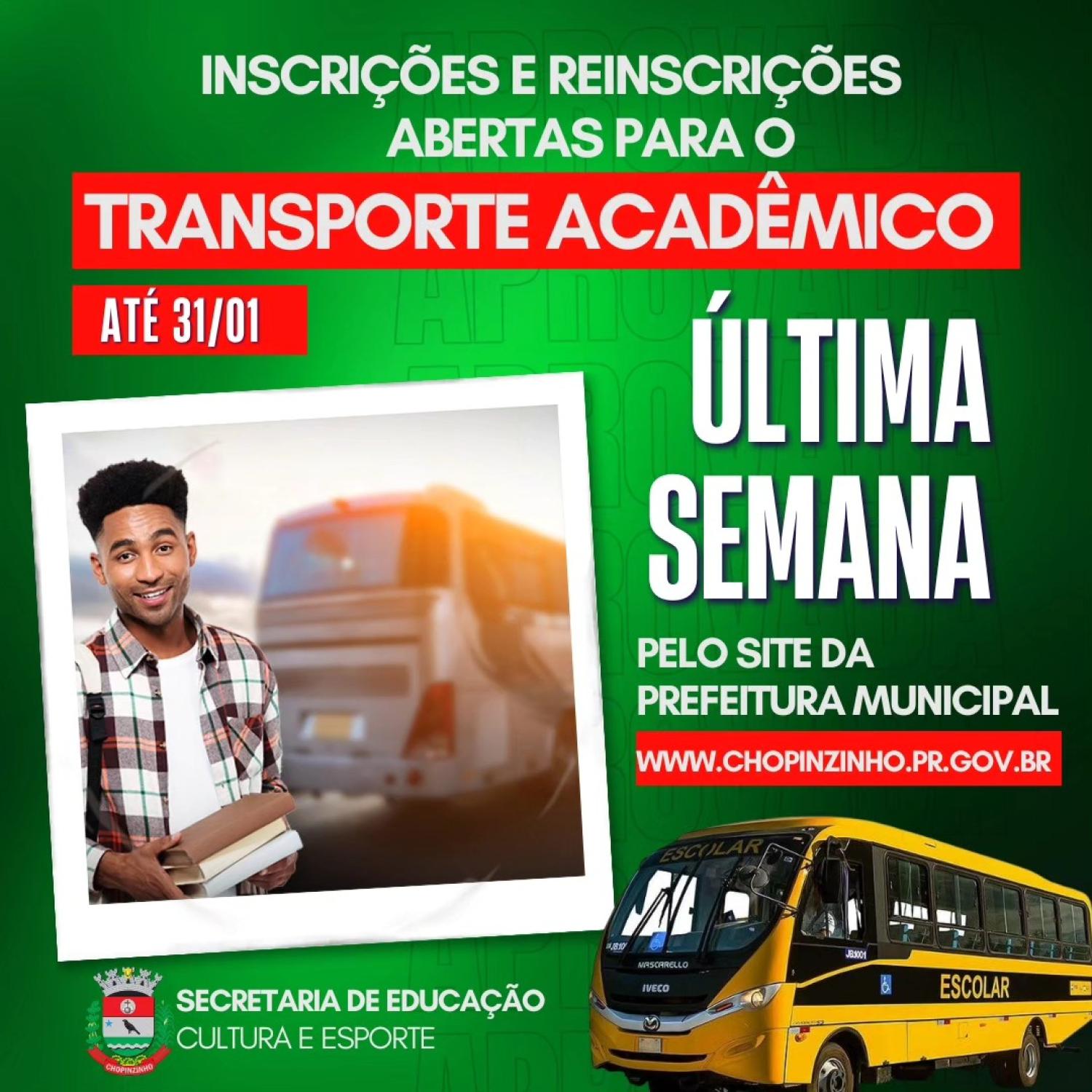 Termina hoje o período de inscrições para os interessados no Transporte Acadêmico, de forma on-line pelo site do município de Chopinzinho.