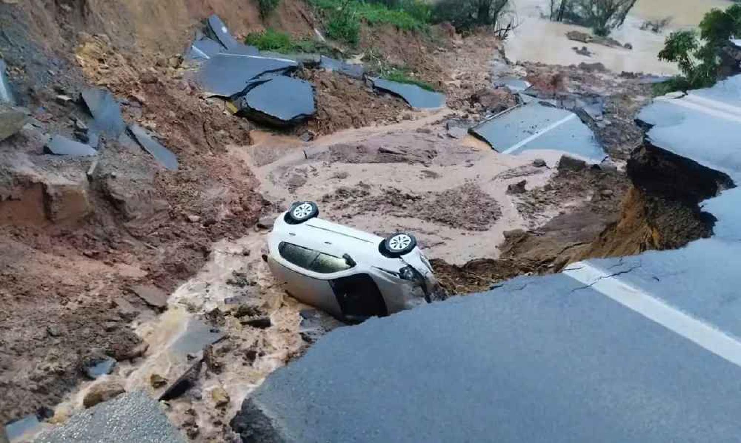 O condutor não percebeu os sinais de alerta feitos por pessoas que estavam na estrada, e o carro acabou caindo no buraco aberto durante as fortes chuvas que têm atingido a região. Uma ambulância foi acionada, mas o casal conseguiu deixar o veículo e acabou sendo atendido por bombeiros que já se encontravam no local.