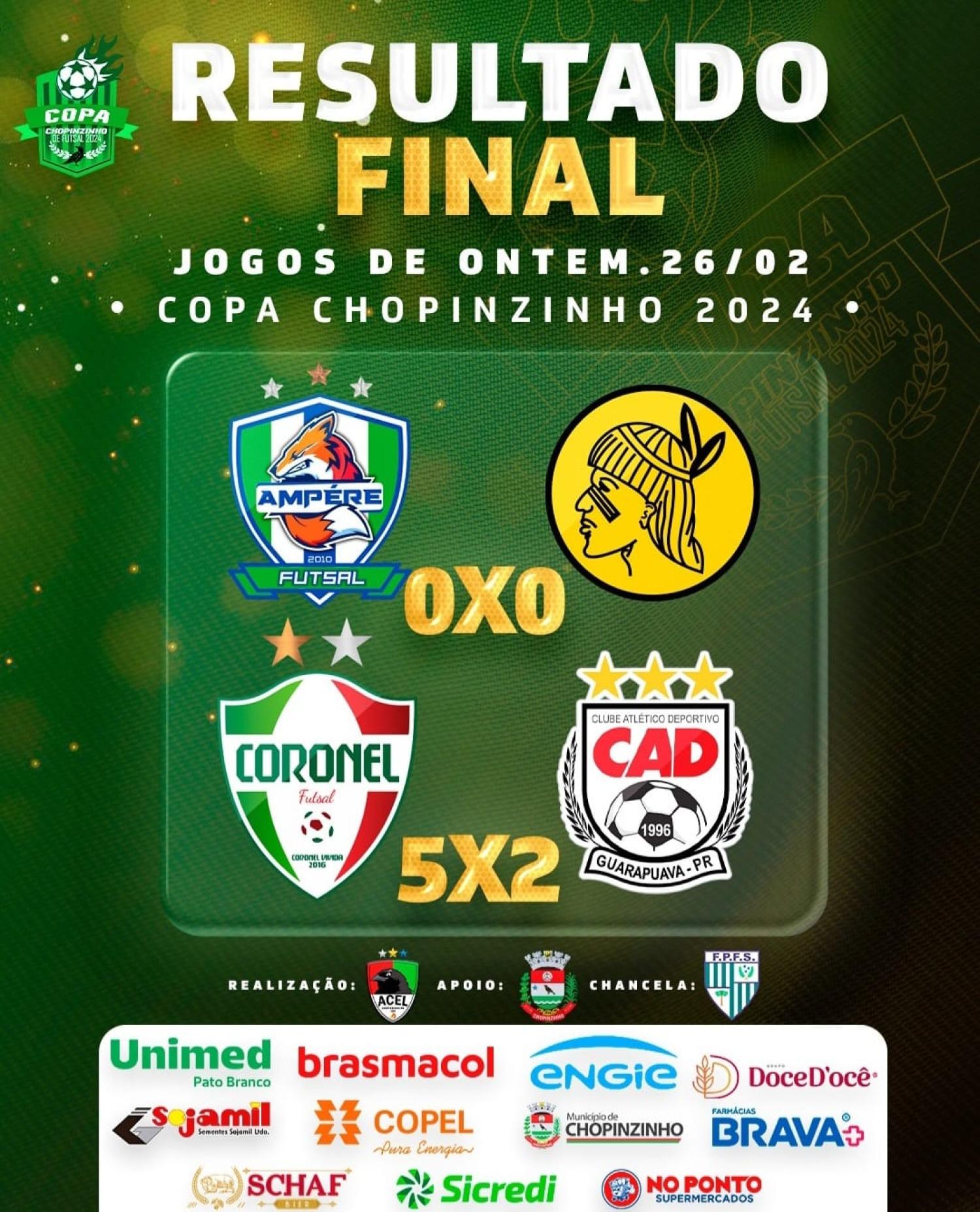 Dois jogos marcaram a abertura da Copa Chopinzinho de Futsal na noite desta segunda feira, dia 26, no Ginásio Deonisto Debona.