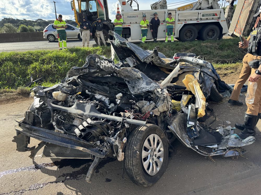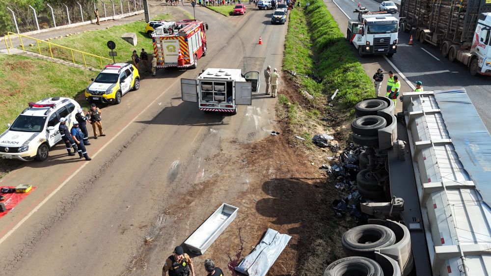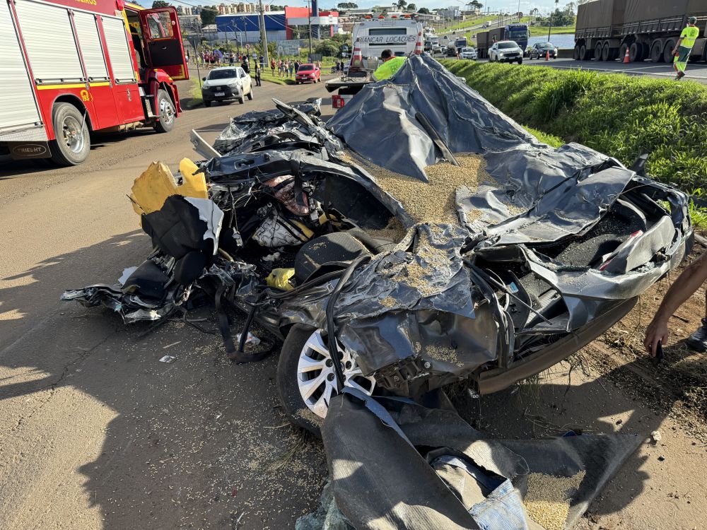 Três pessoas morreram e duas ficaram gravemente feridas em um acidente registrado na marginal da BR-277, em Guarapuava, no Centro Sul do Estado. As vítimas fatais eram ocupantes de um Polo. O carro foi esmagado por um caminhão Bitrem, carregado com cevada.