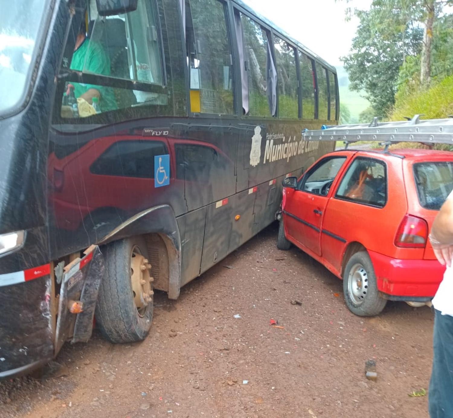 Um acidente de trânsito foi registrado na sexta-feira (08), pela manhã, na estrada rural da comunidade de Mingau, interior de Candói. A ocorrência envolveu um Gol e um ônibus de propriedade da Prefeitura.