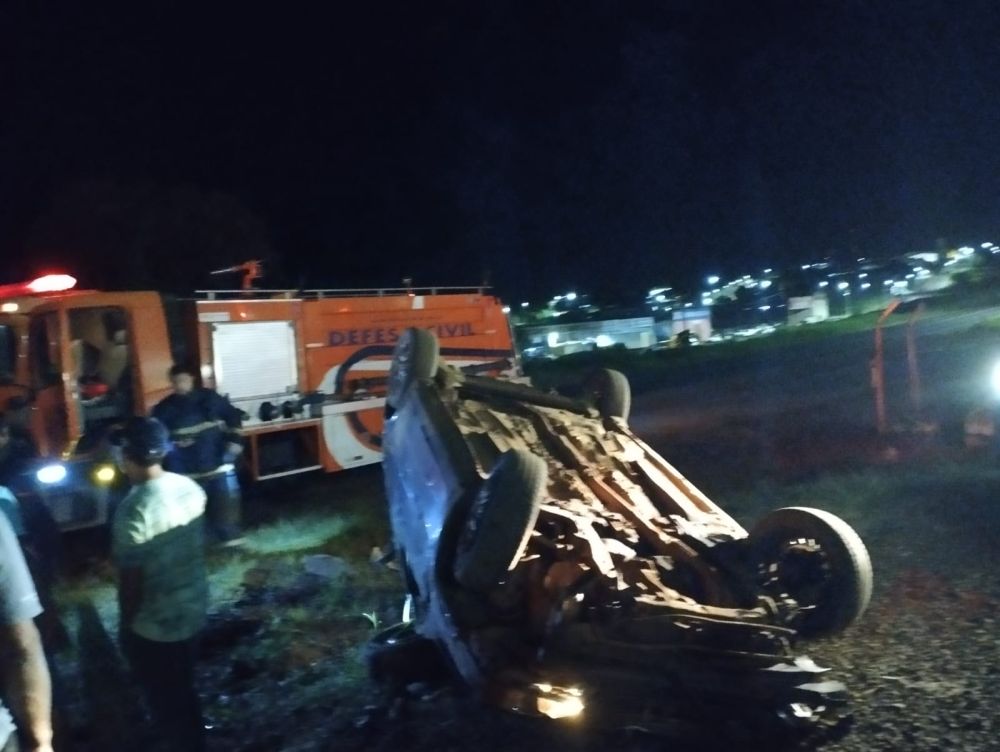 Uma colisão traseira seguida de capotamento foi registrada no início da noite deste sábado (30) na BR-373, trecho que passa pelo perímetro urbano de Candói. O acidente envolveu um Corsa e um Monza.