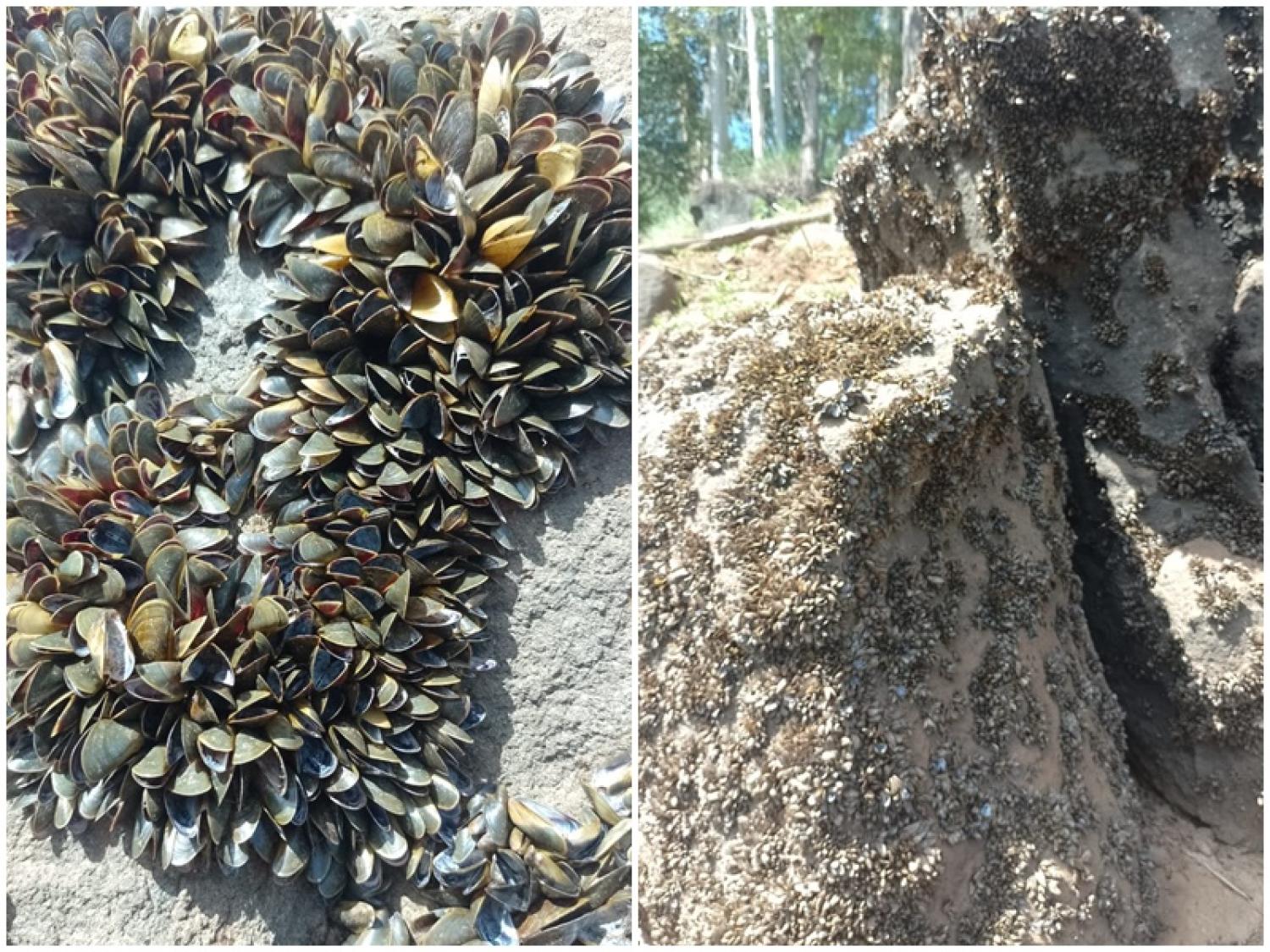 Moradores ribeirinhos e usuários do lago da represa da Usina Hidrelétrica Santo Santiago, que abrange vários municípios da região, estão preocupados com o aparecimento do mexilhão dourado no lago. O invasor está gerando problemas para os peixes e desconforto para quem frequenta o lago, pois exala um cheio horrível.