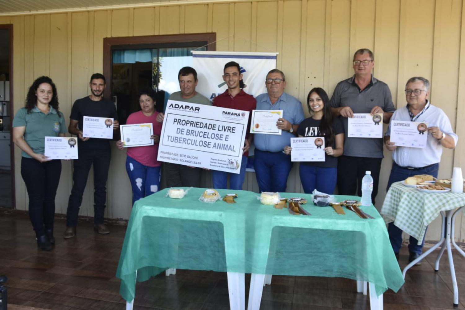 O certificado foi entregue pela Gerência Regional da Agência de Defesa Agropecuária do Paraná (Adapar) de Guarapuava, por meio do Programa Nacional de Controle e Erradicação da Brucelose e da Tuberculose Animal ? (PNCEBT).Essa conquista torna a propriedade a primeira do município a obter o status livre dessas doenças, e a terceira da região de Guarapuava ? as outras duas são Pinhão e Reserva do Iguaçu. No total, a Regional de Guarapuava é formada por Candói, Cantagalo, Guarapuava, Palmital, Pinhão, Prudentópolis, Reserva do Iguaçu e Turvo.