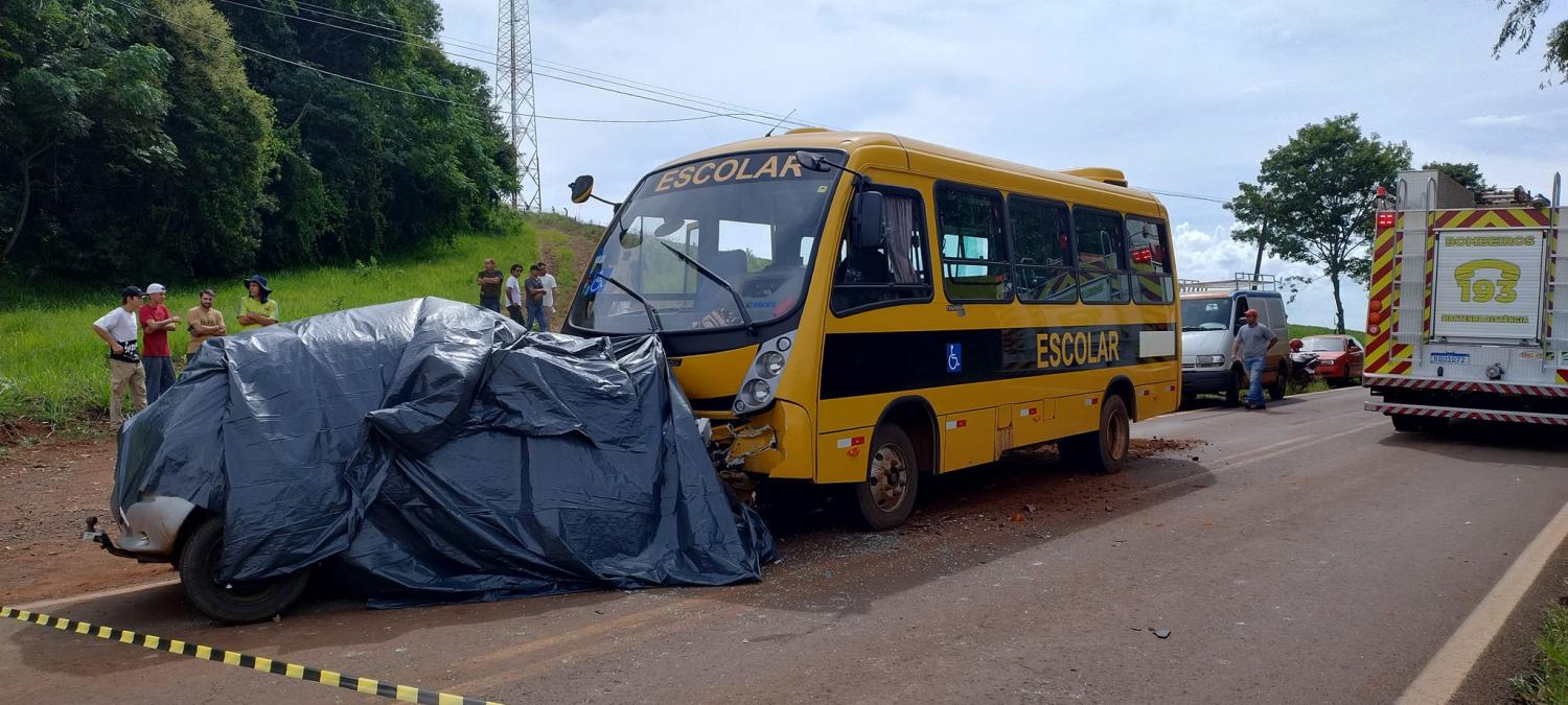 Três pessoas morreram no início da tarde desta quarta-feira (10) vítima de um grave acidente registrado na PR-473, em Cruzeiro do Iguaçu, no Sudoeste do Estado. As vítimas ocupavam um Corsa que bateu de frente com um ônibus escolar.
