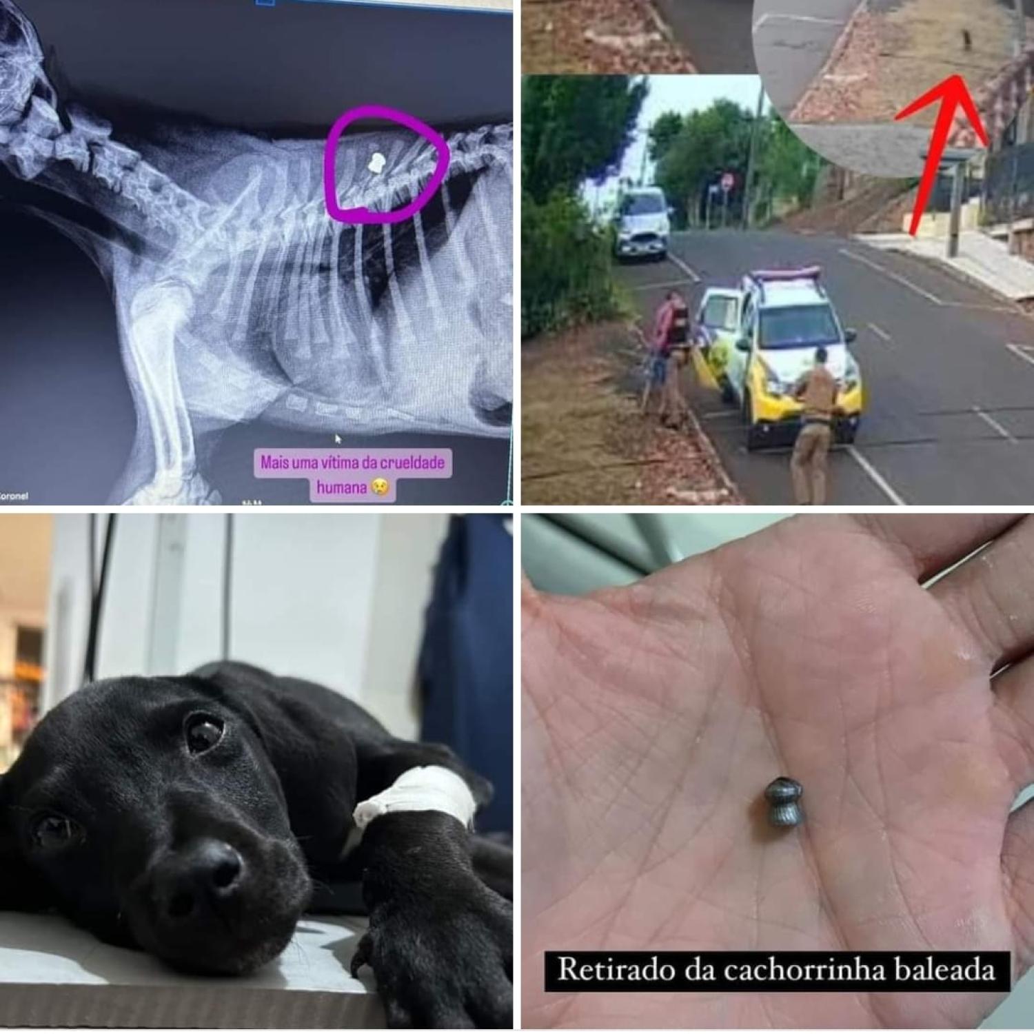 No local, a PM constatou um cão de pequeno porte com um ferimento provocado por um chumbo disparado a partir de uma espingarda de pressão. Uma moradora relatou que o autor do disparo seria um homem morador nas proximidades.