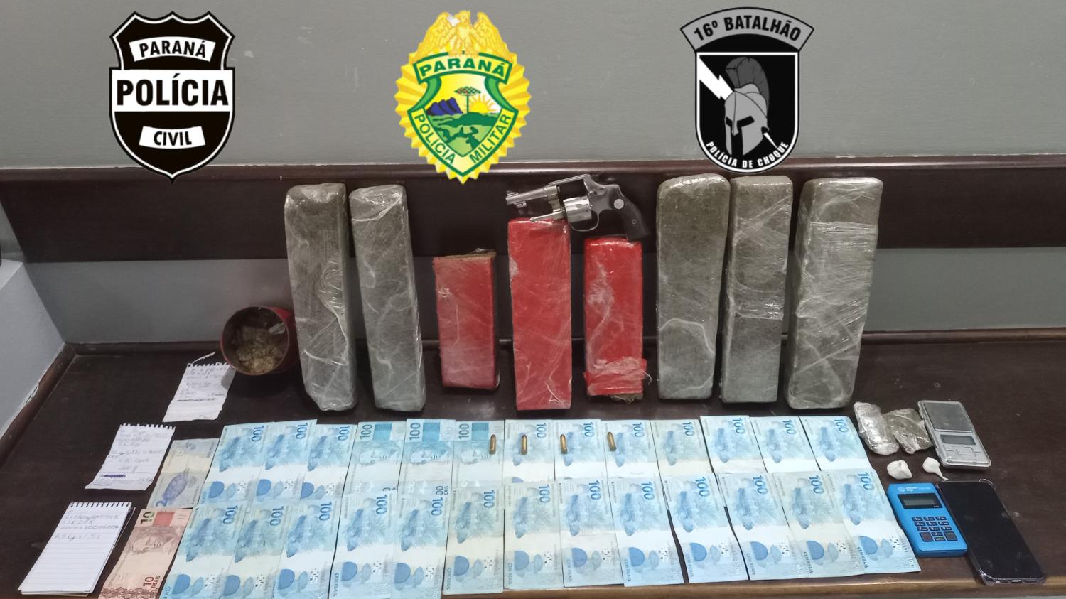A Polícia Militar numa ação conjunta com a Polícia Civil realizou mais uma ação para combater o tráfico de drogas em Candói, no Centro Sul do Estado. Por volta das 19h30 da sexta-feira (12), uma equipe do Pelotão do Choque acompanhada de um investigador da Polícia Civil obteve êxito em prender um homem de 32 anos, suspeito de tráfico.