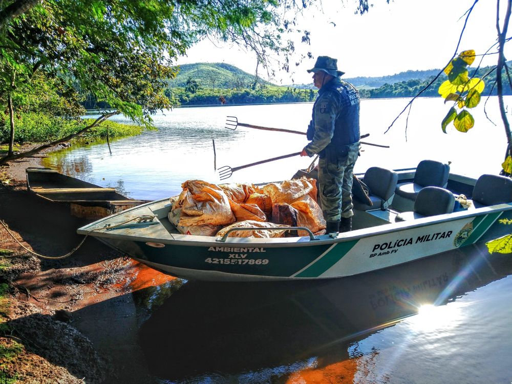 Patrulhamento aquático da Polícia Ambiental pelo Rio Iguaçu entre às barragens de Salto Santiago e Salto Osório, resultaram em prisões, apreensão de mais de 3.500 metros de rede, além de diversos apetrechos proibidos como fisgas, tarrafas e bóias loucas utilizados em Pesca Predatória. Na esfera administrativa, foram lavrados Autos de Infração Ambiental que totalizam R$ 11.400,00.