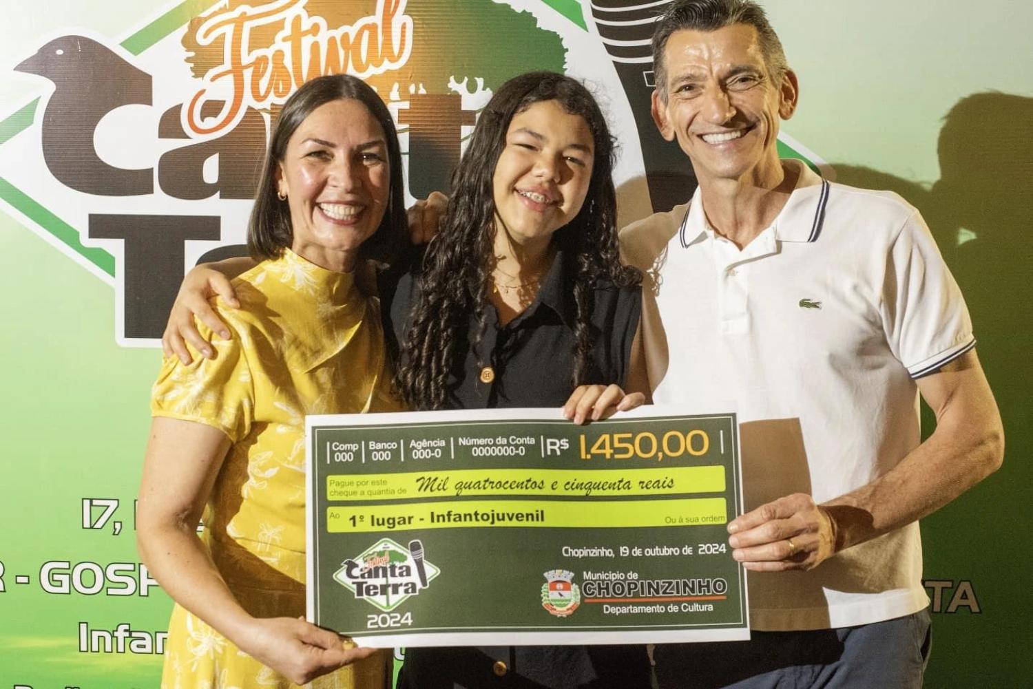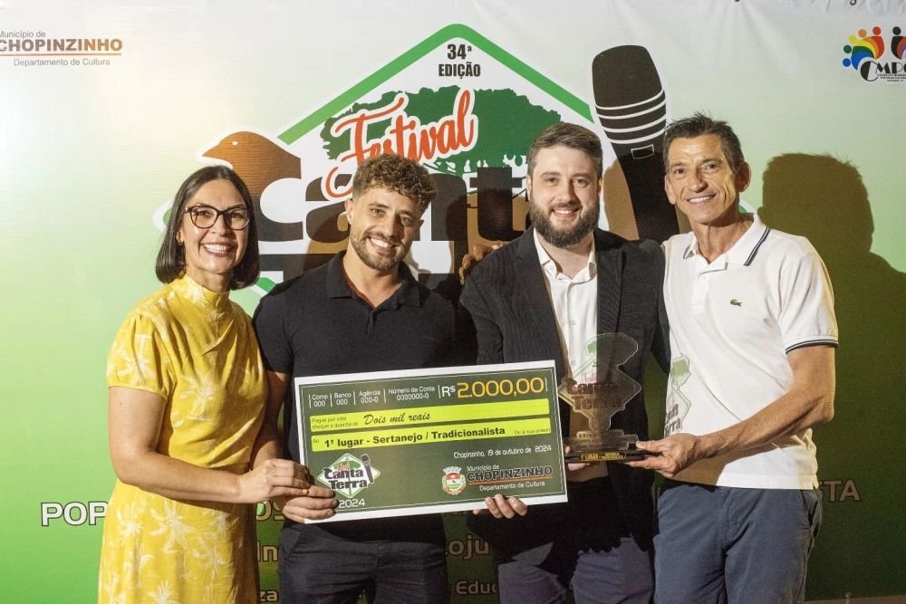 A 34ª edição do Festival Municipal da Canção-Canta Terra 2024, encerrou com chave de ouro e sucesso de público nas três noites. No sábado à grande final contou com 32 candidatos de todas as categorias disputadas, onde foi distribuído quase 30 mil reais em prêmios. O evento realizado pela Prefeitura Municipal de Chopinzinho, através do Departamento de Cultura, contou com grande público nas três noites, além da transmissão exclusiva da Nossa FM através do Youtube e Facebook. Confira a classificação final do festival: