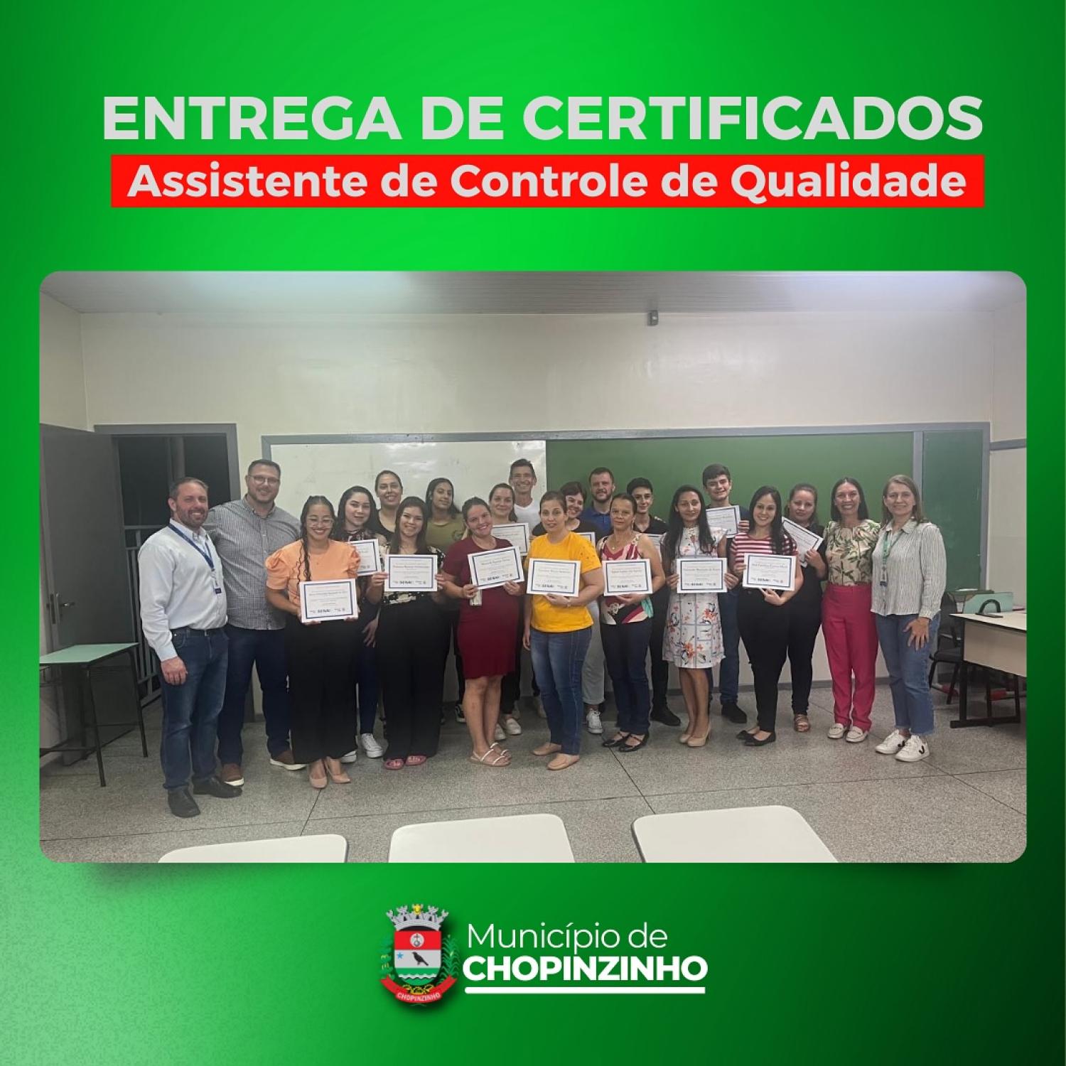 Na última quinta-feira (14) em Chopinzinho foi marcada pela entrega de certificados aos alunos que concluíram o curso de Assistente de Controle de Qualidade promovido pelo SEBRAE de Pato Branco.