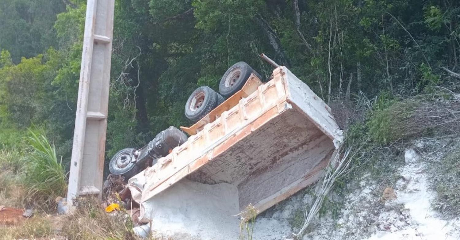 Um grave acidente envolvendo um caminhão basculante com placas de Marmeleiro, foi registrado na manhã desta segunda-feira (18), na linha São Brás, zona rural de Vitorino.