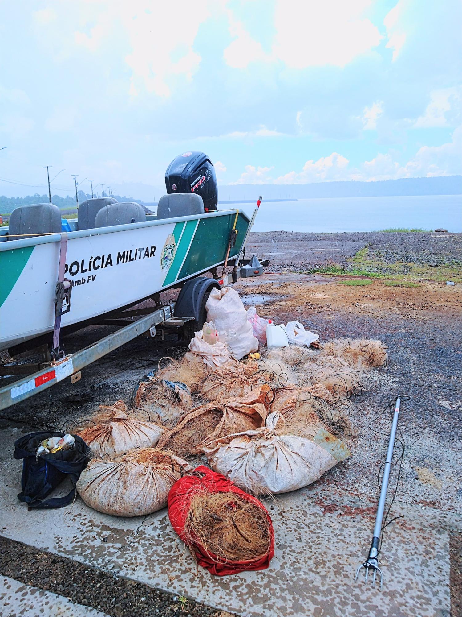 Não foram localizados os responsáveis pelos materiais utilizados para a prática de pesca predatória, sendo estes apreendidos e encaminhados à Sede da 4° Cia de Polícia Ambiental no município de Guarapuava para posterior destruição.
