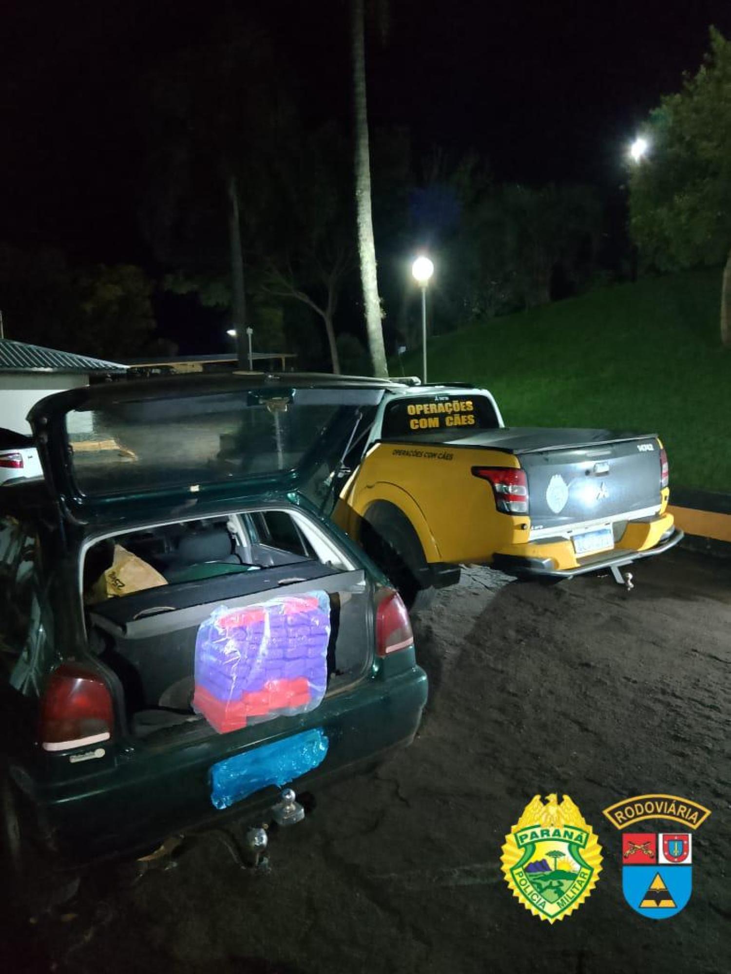 No total, foram apreendidos 41 tabletes de maconha, pesando aproximadamente 22 quilos. Os envolvidos relataram que saíram da cidade de Pato Branco ao meio-dia e foram até Francisco Beltrão, onde pegaram a droga próximo ao Presídio Estadual. A intenção era transportar o entorpecente de volta a Pato Branco. O condutor estava com sua Carteira Nacional de Habilitação (CNH) suspensa e conduzia um veículo pertencente a um familiar. A droga estava armazenada no banco traseiro do carro e aos pés dos passageiros.