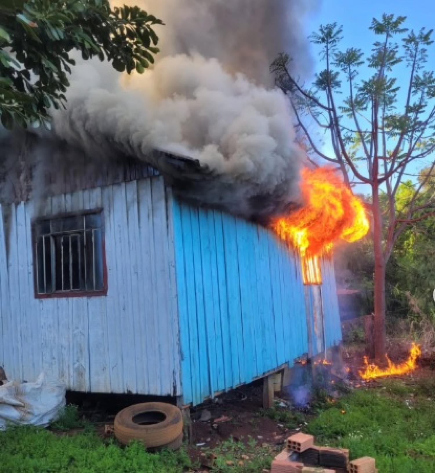Uma residência de madeira pegou fogo na manhã desta quinta-feira (11), em Coronel Vivida. O incêndio ocorreu na Rua Primo Zeni, nas proximidades da base do SAMU. No momento do ocorrido, não havia moradores no imóvel.