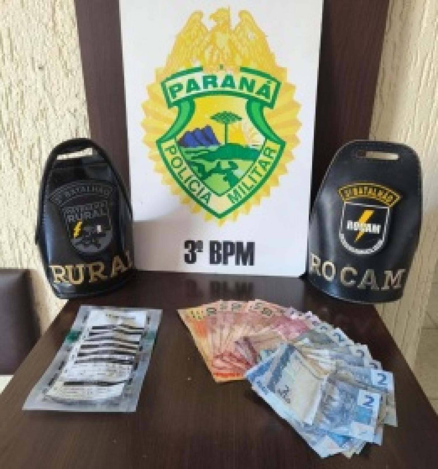 Em busca pessoal, foram localizadas cédulas em moeda corrente nacional, em notas fracionadas, em quantia compatível com a prática de tráfico. Diante da situação de flagrância por ato infracional análogo ao tráfico de drogas, foi realizada a apreensão do adolescente, com a garantia de seus direitos previstos no Estatuto da Criança e do Adolescente.